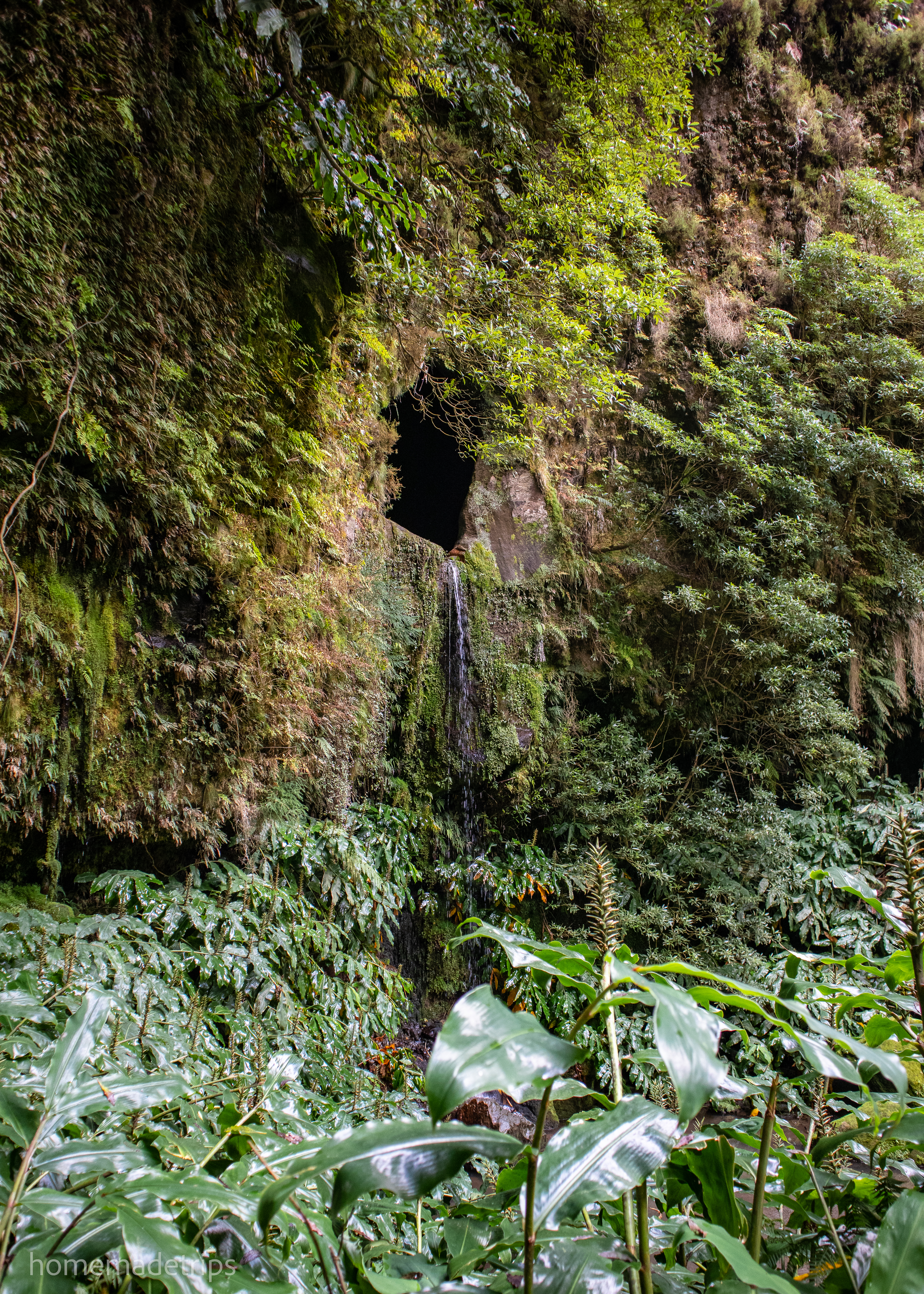 Po drodze z Furnas do Ponta Delgada jest kilka fajnych szlaków i miejsc do odwiedzenia. Jako pierwszy wybieramyszlak PRC37 SMI. Deszcz wisi w powietrzu. Szlak początkowo wiedzie przez pastwiska, potem przechodzi przez schodki, kładki, tunele i akwedukty. Podoba nam się jego różnorodność. W końcu docieramy do niewielkiego wodospadu. Woda wylewa się z dziury w skale stąd nazwa “okno do piekła” (pt. Janela do Inferno) i tworzy niewielkie rozlewisko. Podobno dziura połączona jest z jeziorem Lagoa do Fogo. Deszcz na razie wytrzymuje.